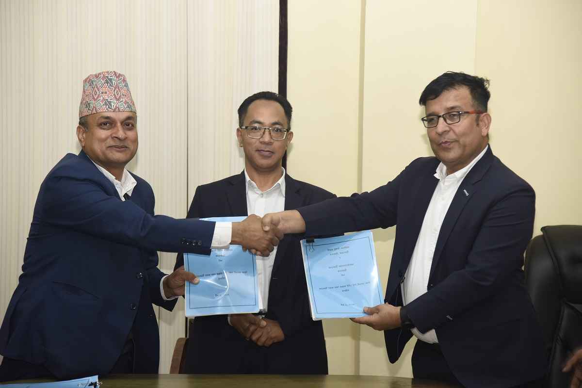 Kathmandu Metropolitan City (KMC) has signed an agreement with Nepal Trust to rent the Kathmandu Plaza for office space. The agreement was signed by Basant Adhikari, the chief administrative officer of the metropolis, and Bishnu Prasad Dhakal, joint secretary of the trust, in the presence of the Executive Secretary of Nepal Trust, Sarju Kumar Vaidya.