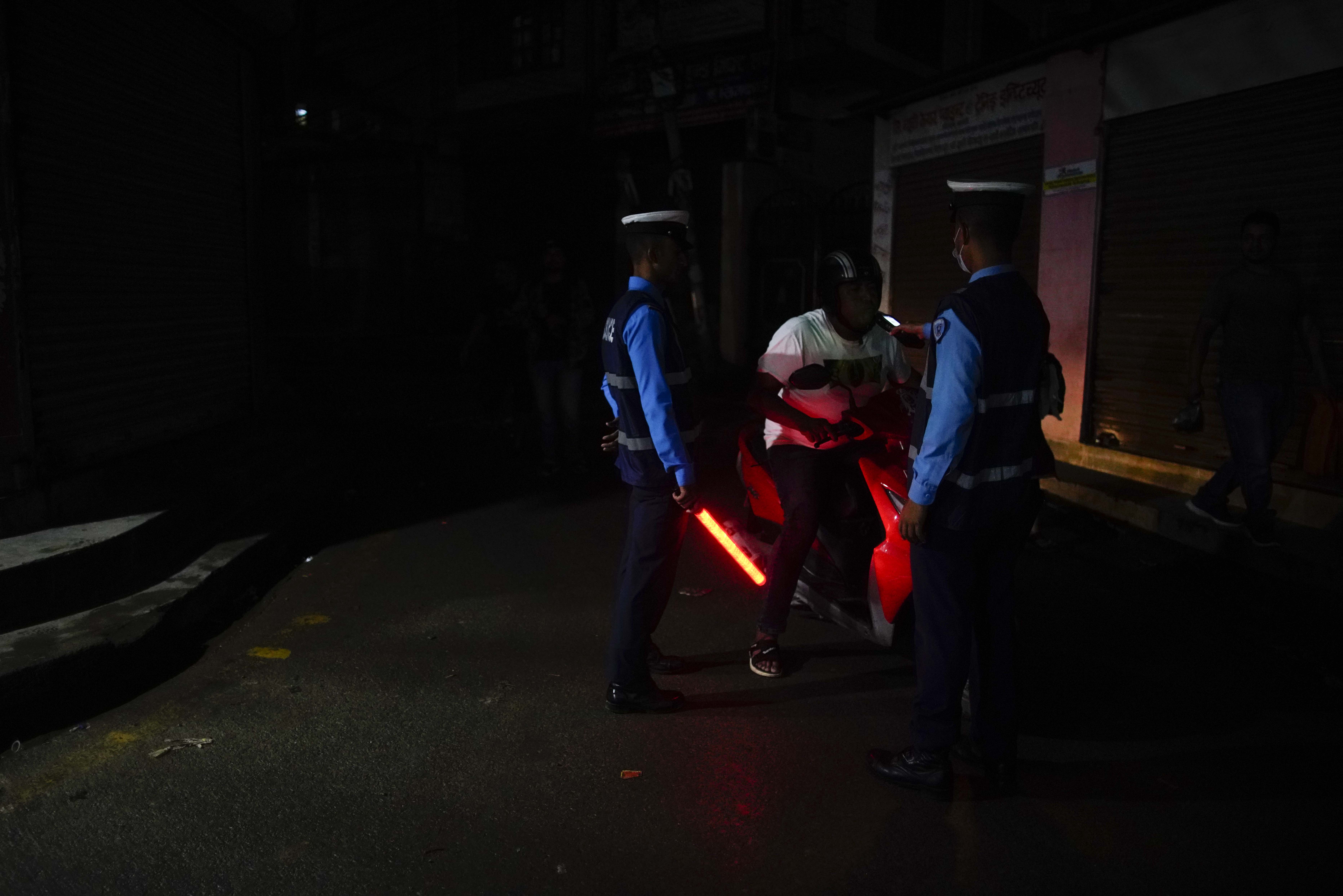 See photos of drink driving test at a busy junction in Kathmandu Sunday evening: