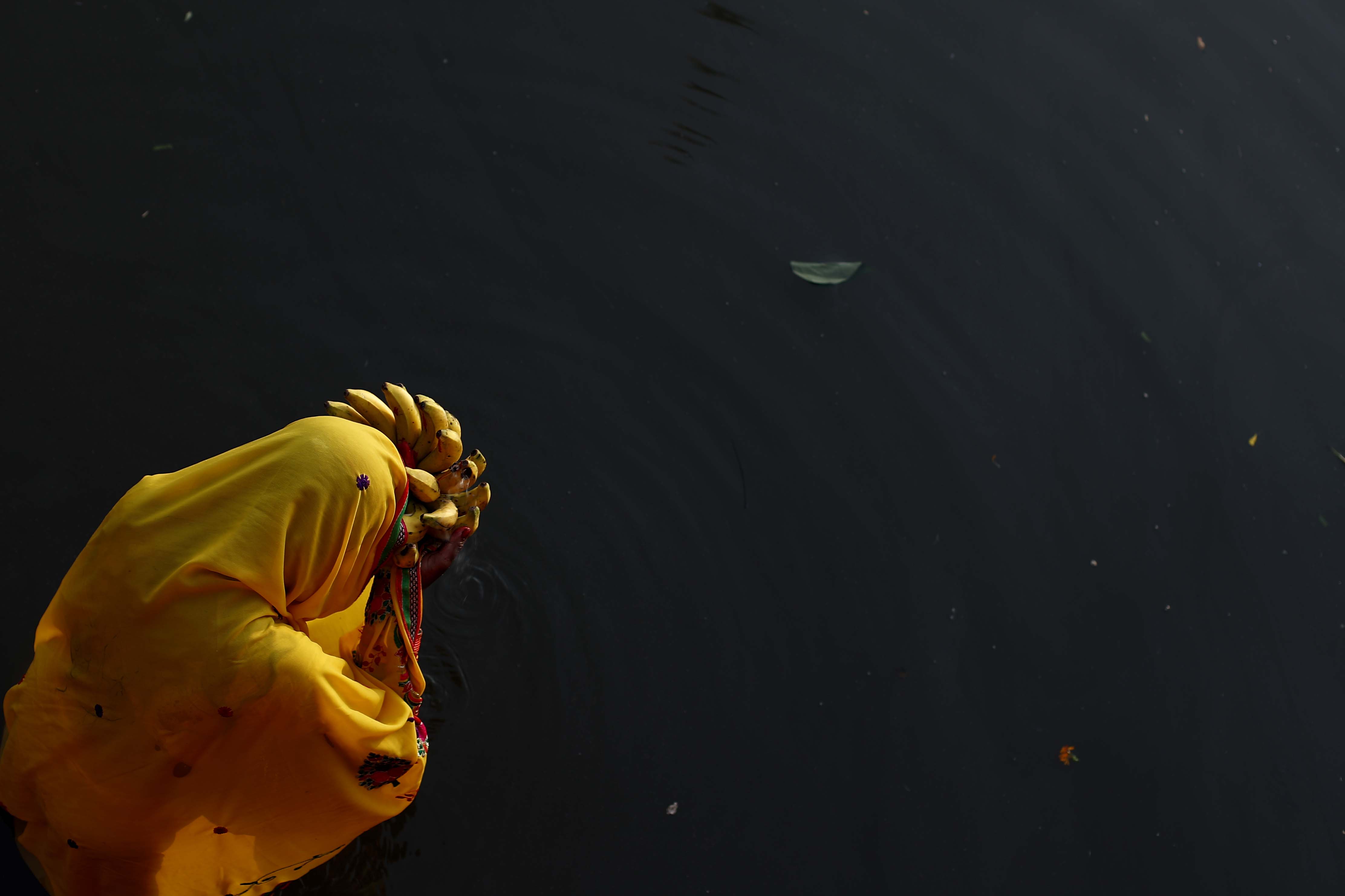 On Chhath, devotees gather by water bodies to offer prayers by fasting, bathing, and standing in the water for continuous periods to offer prayers to Surya (Sun God), thanking and paying respects to seek blessings for sustaining life on earth.